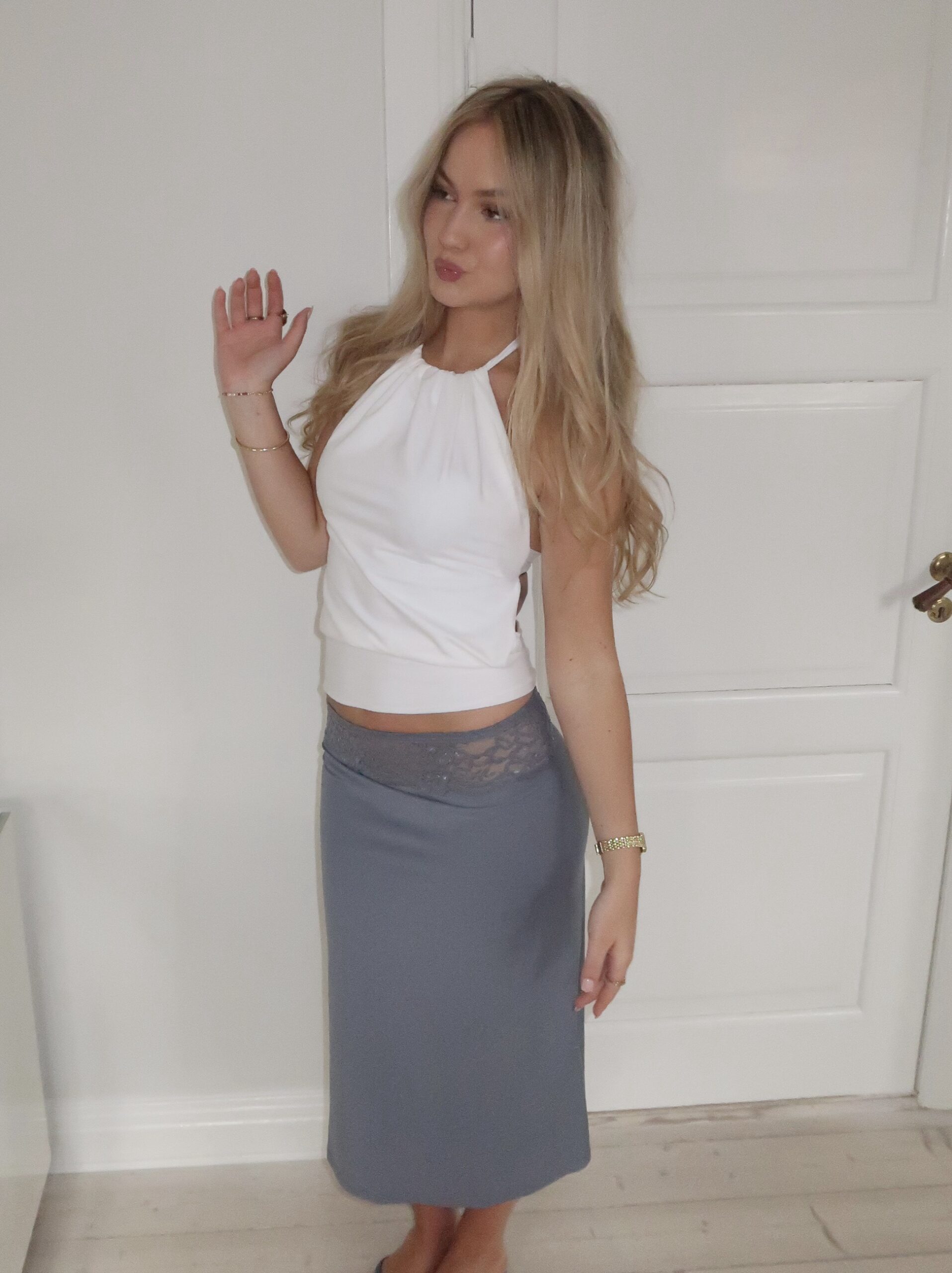 Toppen Belle er et must-have i garderoben. Den har et elegant udtryk, men er samtidig let og levende. Toppen har en åben ryg, men med detaljer der giver komfort og støtte. Samtidig er båndet i nakken justerbart, hvilket giver dig frihed til at style toppen på flere måder.
